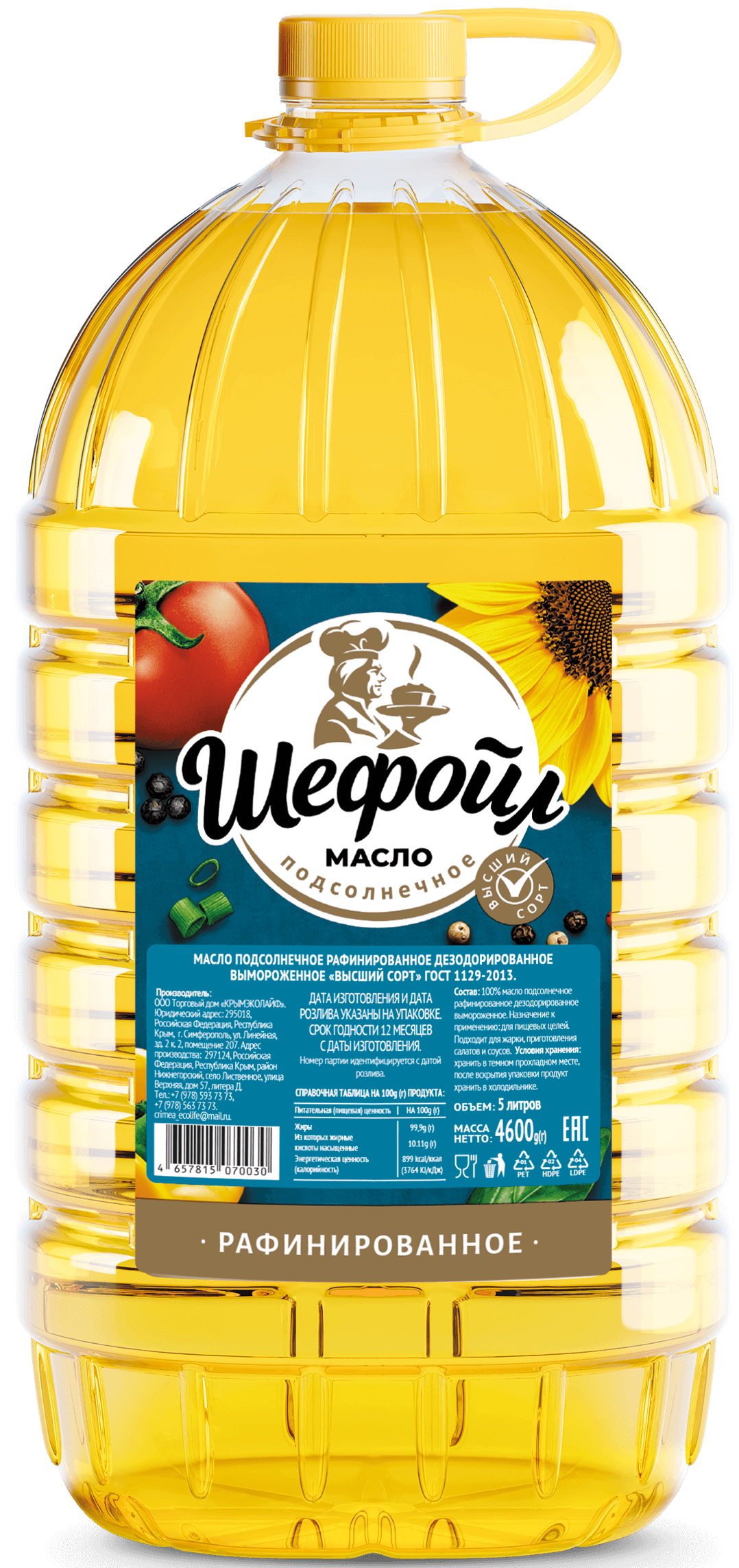 Подсолнечное масло Шефойл — тонкий акцент вкуса и источник пользы в каждой капле. Надежное качество, раскрывающее потенциал ваших любимых рецептов